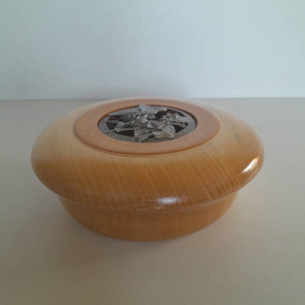 Bol en tilleul avec parti supérieure bois de cerisier couvercle étain décor papillon